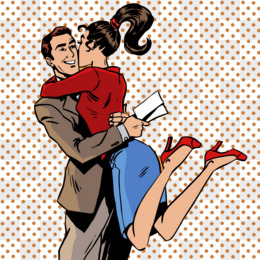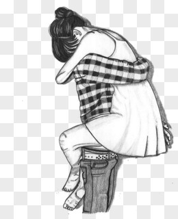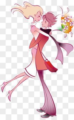 手绘卡通穿冬装拥抱的情侣插画免抠元素