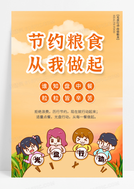 卡通文明用餐光盘行动节约粮食从我做起海报设计
