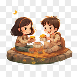 卡通手绘小朋友一起吃午餐元素