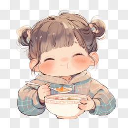 卡通小女孩在喝汤免抠元素