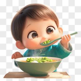 3D卡通一个小男孩在吃绿豆汤免抠元素