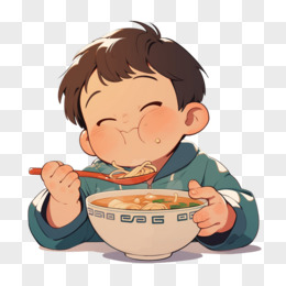 卡通小男孩在喝汤免抠元素