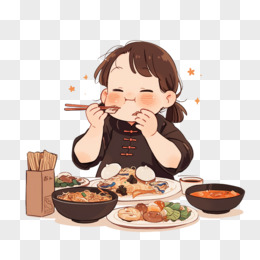 卡通年轻女孩在吃午餐免抠元素