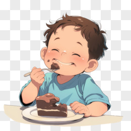 卡通小男孩在吃巧克力蛋糕免抠元素