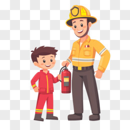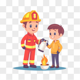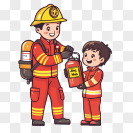 插画消防员用水枪扑灭大树前木堆的火免抠元素