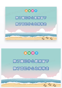 卡通沙滩环保温馨提示卡片