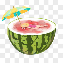 手绘创意插画女孩躺在西瓜泳池上免抠元素