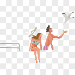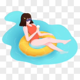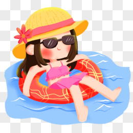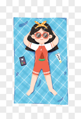 卡通手绘可爱女孩游泳晒日光浴 元素