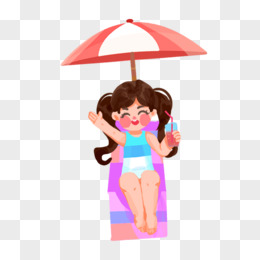 卡通手绘免抠可爱女孩晒太阳素材