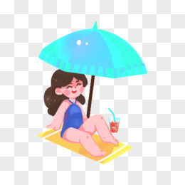 卡通手绘免抠晒太阳的女孩素材