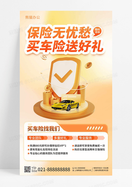 金色简约保险无忧愁买车险找我们送好礼专业团队手机海报