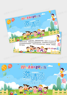 蓝色可爱色卡通家长会邀请函幼儿园家长会请柬幼儿园邀请函