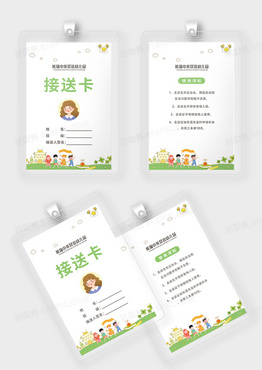 绿色卡通幼儿园工作证卡通幼儿园接送卡模板
