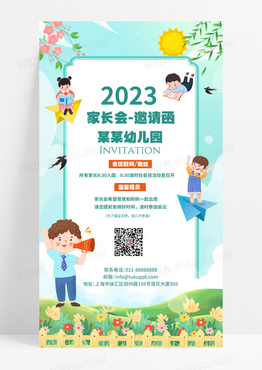 绿色简约卡通画幼儿园家长会邀请函手机海报