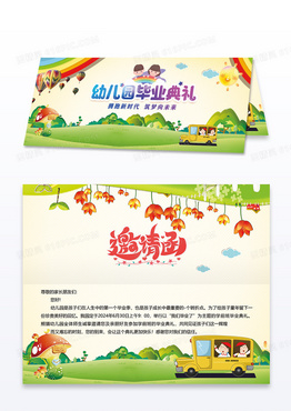 黄色卡通风格幼儿园毕业典礼邀请函