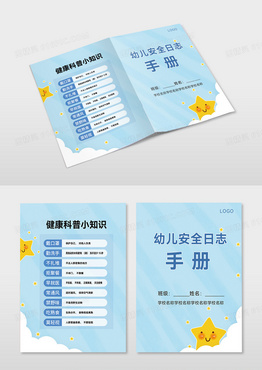 青色简约幼儿园安全日志手册幼儿园手册画册封面