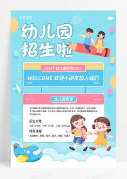 蓝色幼儿园学校招生简介海报背景幼儿园招生简章海报