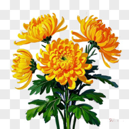 油画风格菊花免抠元素