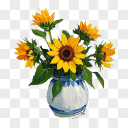 油画风格向日葵插花免抠元素