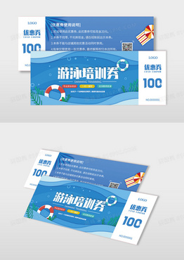 教育蓝色大气卡通游泳代金券游泳馆游泳招生培训优惠券游泳培训