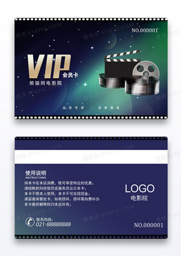 深蓝色渐变VIP会员卡电影院会员卡折扣卡优惠卡电影院电影院vip会员卡