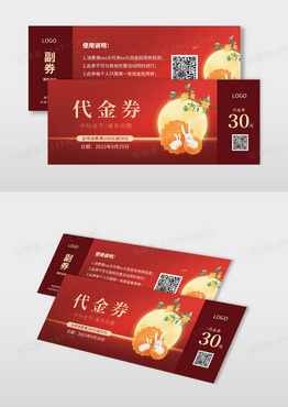 红色中式风格喜庆节日中秋节代金券优惠券中秋代金券设计