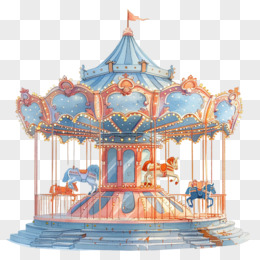 一组矢量膨胀风3D立体游乐园设施元素套图合集