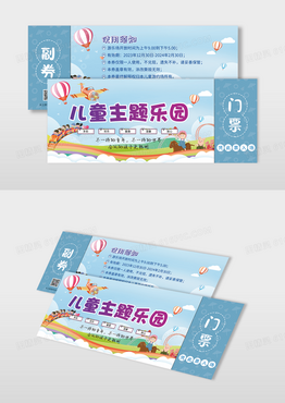 蓝色卡通儿童插画主题乐园游乐场代金券儿童乐园门票入场券