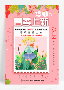 卡通春季上新邮票风格樱花简约海报