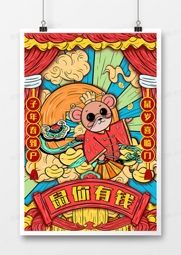 手绘卡通坐沙发有钱人土豪数钞票元素