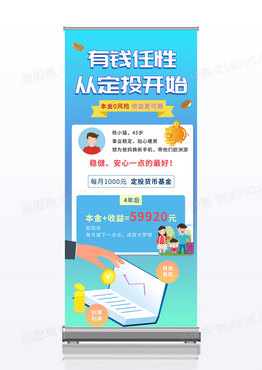 蓝色渐变理财基金定投金融简约易拉宝