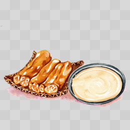 一组卡通水彩风粤式点心小吃合集插画之油条元素