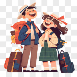 一组可爱女孩旅行出行贴纸免抠元素之女孩元素