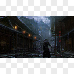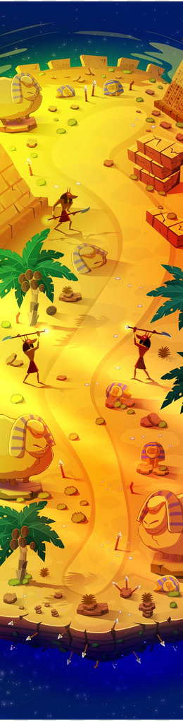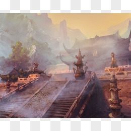 游戏场景重峦叠嶂的高山黄色月亮彩绘