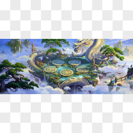 水彩水墨手绘老鹰捉小鸡游戏场景素材
