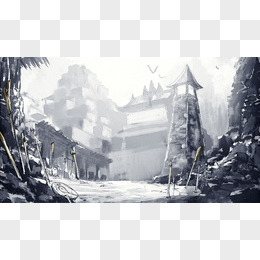 水彩水墨手绘老鹰捉小鸡游戏场景素材