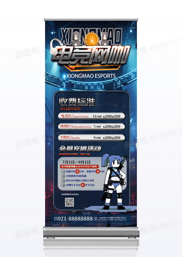 插画风电竞网吧网咖活动宣传展架电竞游戏网吧充值活动