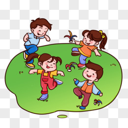 手绘卡通小朋友玩斗鸡游戏插画场景免抠元素