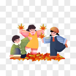 秋天小伙伴们一起捡落叶玩耍
