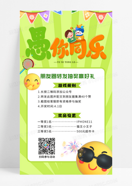 活动促销绿色卡通愚你同乐愚人节活动手机宣传海报