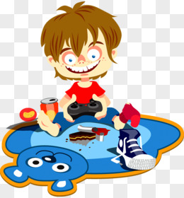 卡通手绘免抠男孩打电动手柄游戏元素