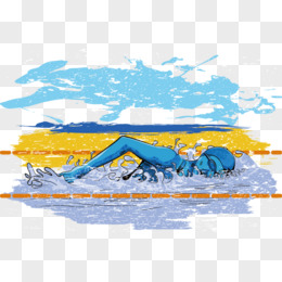 卡通手绘小女孩玩水上乐园滑滑梯免抠元素