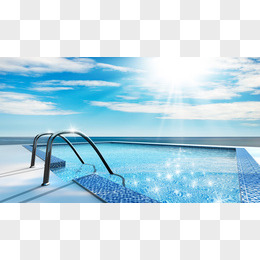 插画大太阳下的小女孩泡在游泳池中免抠元素
