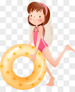 卡通手绘女孩拿着游泳圈元素