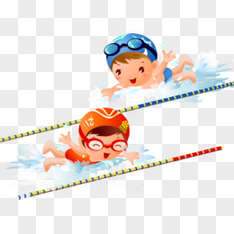 卡通风格游泳大的可爱小孩