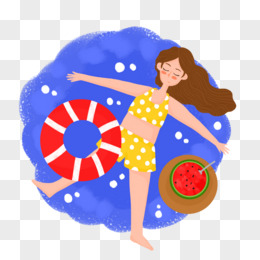 浮在泳池里的女孩夏日插画元素