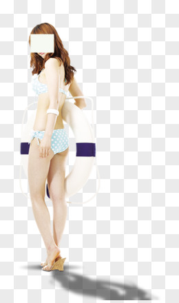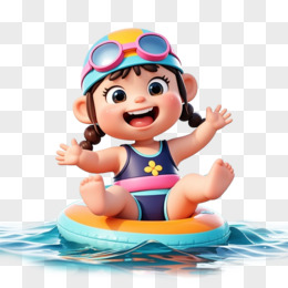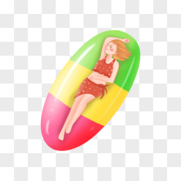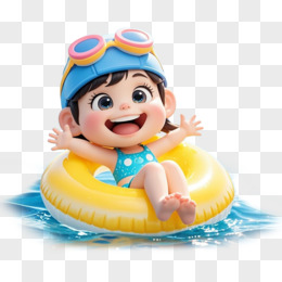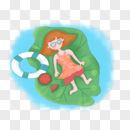 卡通手绘可爱女孩游泳晒日光浴 元素