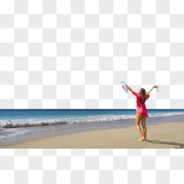 卡通手绘小女孩在沙滩玩耍免抠元素
