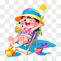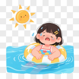 插画大太阳下的小女孩泡在游泳池中免抠元素