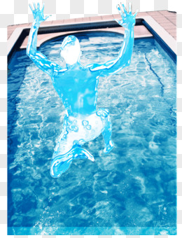 卡通手绘小女孩玩水上乐园滑滑梯免抠元素